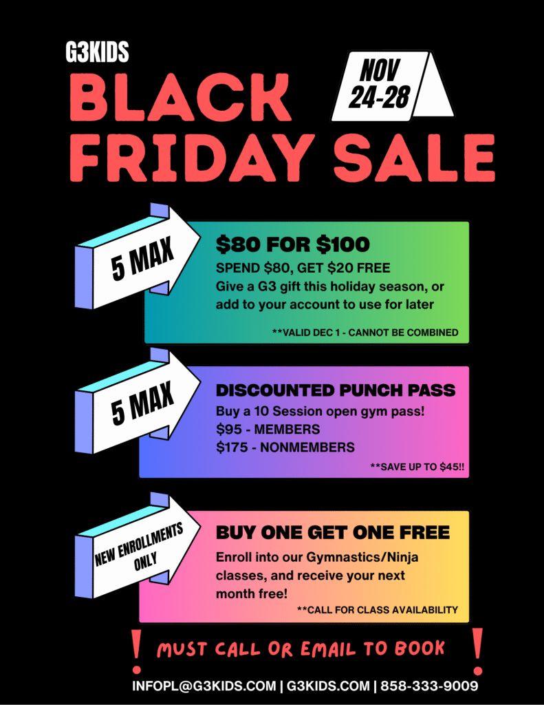 G3Kids is a gymnastics-based athletic program and interactive learning academy. G3Kids offers traditional and trendy gymnastics classes while ensuring safety and fun exploration. In an effort to reach a child’s highest potential for growth, we emphasize maximizing brain stimulation through physical activity.